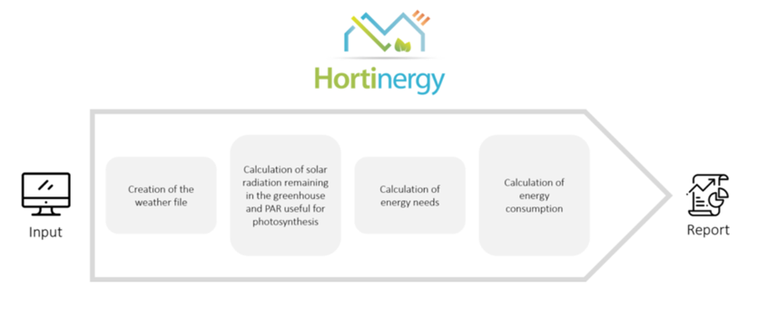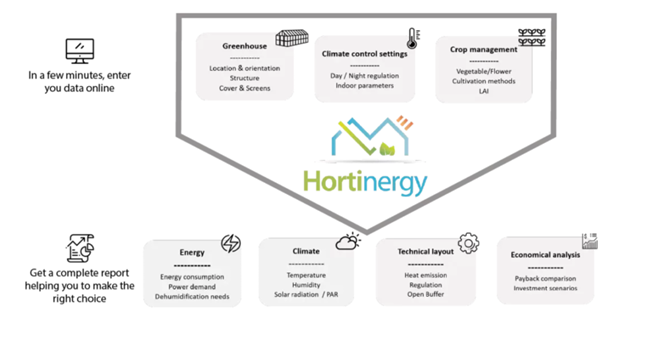 Hortinergy models the impact of supplementary lighting on the inner climate and energy consumption (heating, cooling, dehumidification, lighting and ventilation).