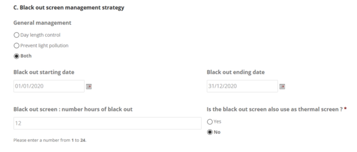 - Day Light Integral (DLI) and minimum ‘’night’’ hour per day,